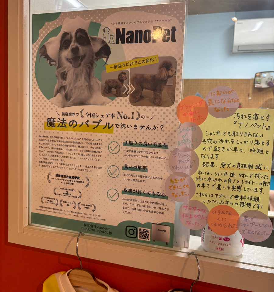 結果、シャンプーの泡立ちがよく、きちんと洗えてブロー時間が短縮。飼い主さんからは、「ふわふわな仕上がり、ニオイが気にならなくなった!綺麗が続く」と、リピーターが多いお手入れメニューです!